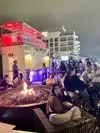 Elevated dj. We arrived at night, easy with no hassle... BAM! lights everywhere---on the entrance side one can see the baseball field, while entering the Sky Room fills you with downtown buildings and lights. This place makes strong drinks and plays top 40 music. The crowd was friendly and the firepit warm, for those who are into lounging. I suggest guest experience this place during the day. Blue skies and sea. Cheers!