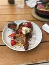 What a spectacular venue for a Sunday brunch. The food simple and super tasty. Really liked the arroz chaufa and the soft scrambled eggs w jerk mushroom tacos. To finish it on a sweet note try the coconut layer cake. Great coffee selection.