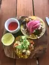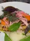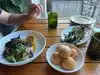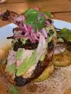 I had the ceviche. Let me tell you what, it was good! Then for my second course I had the crispy cabbage. Mmmmm My boyfriend had the pork belly sandwich and his kid had the chicken thigh sandwich. We were very impressed with everything and the ambiance could not have been better on their outdoor patio. The service was over the top. We almost moved in we had such a great time!