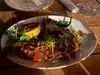 The tuna appetizer was amazing, I had the spicy prawns and they were delectable. My husband had the catch of the day red snapper very flavorful. They don’t know how to make a Mai tai even our waiter agreed what the bartender tried to serve was a mojito. That being said the service was excellent and the view beautiful despite the rain.