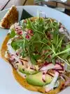 Very nice culinary experience. I enjoyed particularly the cheese puffs. Although it has a very nice outside terrace for sitting right on the water edge, we preferred to sit indoors as it was dusk and bugs had started. Fish was fresh and tasty, the ceviche was delicious, and service impeccable. Would definitely go back.