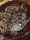 My husband and I shared a platter of chicken swarma, taboulle, falafel, homemade pita, pickles, olives, and peppers with various dips of hummus, babaganoush, tahini, and garlic. Everything was delicous especially the chicken swarma, homemade pita bread, hummus and garlic spread. Cost was around $30 and platter normally comes with chicken swarma and lamb swarma however we only wanted chicken. Chicken portion was not that big so if you do not eat much meat it is enought to share. They are generous with other side dishes. Service was great and friendly staff.