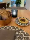 I had one of the most delicious dishes I've had at Disney here! I found the Romesco Chicken so flavorful & perfectly cooked. My server Ryan was attentive & gave me a complimentary Orangecello drink when I didn't have room for dessert, but raved about how fantastic my meal was! I can't wait to take friends back here. You can make reservations in the My Disney App or on Open Table! The bread was delicious with an olive & hummus spread, too!