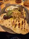 Not what you would normally expect from a Disney restaurant! No kitsch in the decor and the food was outstanding! The staff was attentive from the start and made us feel welcome. And the food!!! From the Iskabubble bread appetizer with the accompanying three (deliciously unique) dips to the skewed chicken souvlaki served with hummus and tzatziki, we were continually impressed with the array of flavors. But the star of the meal was the sea bass baked in parchment. (Huge props to our fabulous server, Kim, for the recommendation.) The presentation alone had us salivating, as Kim made a show of cutting open the parchment to reveal the steaming dish. The fish was cooked perfectly (tender and not dried out from overcooking), and came layered with tomatoes, olives, and onions. But the element that put this dish over the top was the butter wine sauce Kim poured over the dish, once presented. I would highly recommend this restaurant if youāre looking for an adult restaurant that serves an exceptional meal with service to match.
