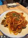 Nice place close to the swan hotel, in mediterran style with small menu. Started with the fried calamari which is quite big nothing special but was good and for the main sea bass Al cartonio which means it is steamed and interesting as you get it in paper but was little lacking taste but as well rather big. Good wine along, decent service