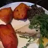 Today evening with a friend visiting from out of town, I came to this restaurant for dinner. I must say, it was one of the best dining experiences I had, eating Indian vegetarian cuisine at Amber India, San Francisco; two thumbs up for this fine dining restaurant. We ordered from a-la-carte dinner menu (not buffet). For starters, we ordered one plate of Jackfruit Lentil Bytes (in India we simply call them ‘cutlet’). It was served with a combo of sweet and tangy sauce and the green coriander sauce. It was really spicy and tangy and a great way to start. The main course was one order of Vegetable Korma and another order of ‘Baingan Mirch-ka-Salan’ (a kind of spicy eggplant preparation). For the accompaniment, we ordered a basket of assorted breads (Naan, Spinach Roti and Lachha Paratha). The food was delicious, sumptuous and at the same time more than enough. The ambiance was great, service was impeccable; cleanliness was spotless perfection. All in all, it was a wonderful evening. The only down side was finding parking in the evening in downtown SF, which is a known problem and one must be prepared for; nothing to do with the restaurant.