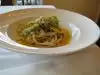 We had a papardella with veg and an eggplant on toast with broccoli rage pesto, followed by cappuccino and an espresso (both decaf). Everything was ok and the service was prompt.