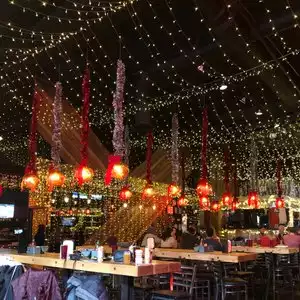 A bit loud with a fun neighborhood wooded decor. A good place to meet friends for drinks and a bite. Staff friendly. We were part of a private event in a upstairs bar area. My guess is the Fire Marshall would not have been happy with the volume of the crowd or the congestion on the staircase. But it was a good space for a private group.