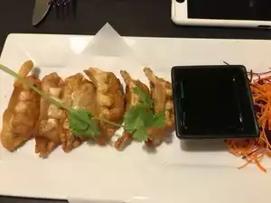 We started with Gyoza fried dumplings. Very delicious. I was not a fan of the Thai dumpling. A little dry not exciting. The red curry with shrimp was great. Tasty and very balanced flavors. The Crab fried rice was fabulous. Very fresh ingredients. I loved the way the flavors expressed themselves. The chicken wings which we ordered with the sauce on the side. The sauce was good but the wings were over cooked for me. The devil noodles with chicken were very good. The soft shell crab was a totally different version. It was too stringy looking for me. The deep fried cat fish was definitely overcooked. I think you have to be selective to order the right dishes. The two waitresses were very nice and helpful.. I would come back but I would need to pick dishes wisely.