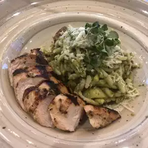 A simple focused menu in a casual inviting environment. I dined here on two occasions and both were great experiences. On one visit I ordered Arancini stuffed with tender braised pork cheek served with a spicy Calabrian aioli as a starter at $8.00. It was very tasty and quite a generous portion. I followed that up with Trofie pasta with the addition of grilled chicken. It was delicious and exploding with flavors. Real comfort food for me! I would highly recommend this spot for a drop-in lunch or dinner in a casual environment centrally located downtown on the first floor of the Hyatt Regency Seattle. The service was excellent as well.Steven provided some great recommendations as well.