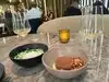 I'm sorry to have to make such a negative review, but unfortunately the reality is that I had a really bad dinner in this restaurant, the food not only disgusted me in terms of taste, heaviness and greasiness, but it also gave me nausea and food poisoning for the whole night. None of the dishes magnify the flavor of the main ingredient, everything was heavily cooked and dipped in fat. Low quality cuisine, unsuccessful “creativity”, non-existent delicacy of the dishes. In short, not just a huge disappointment, but a huge disappointment having paid $250 with just one beer and tap water. In reality it would have been a disappointment even if we had paid 80$, given the disgust that accompanied us during and after dinner. Bad experience. It was the first time that, having dined in a high-end/medium-high-end restaurant, I ate really badly. Sure NOT RECOMMENDED. The "A5 wagyu tartare" could have had a discreet taste, a little spicy and a little acidic, but it navigated in fat and oil and was served with slices of pan brioche fried in poor quality oil, which had not been dried from the frying oil and therefore were very greasy and completely soaked in oil inside, causing disgust, even though they were crunchy on the outside. Overall it was a dish of extreme heaviness. The “caviar shrimp toast” was the same repetition of the fried pan brioche soaked in oil, a sort of French toast, with tasteless shrimps inside and salmon caviar on top (nothing special). No fish taste at all, but only the taste of heavy frying, full of oil that had killed every taste. Taste of sea: not received. After eating a quarter of the toast I was already disgusted and lost my appetite. We should have asked to cancel the rest of the dishes ordered, but stupidly, in order not to appear rude, we continued with the dinner, in the hope that once the "fat-soaked and fried bread" effect had passed, we could hope for at least a decent combination of flavors. Unforgivable mistake! "Short rib Kare kare" was an abundant portion of meat sailing in fat, peanuts oil, meat fat... the whole was not pleasant but cloying. “Chili octopus” was a portion of 2 large (fried and crunchy) octopus tentacles. In itself the taste was not bad, especially if they were accompanied only by the eggplant puree. But the addition of the strong sour taste of the pickles covered the other flavors, making it impossible to amalgamate the components of the dish, otherwise its taste would deteriorate. The roti bread would have been good if it wasn't also soaked in grease. Unfortunately we had ordered desserts from the beginning too, and although we said we would like one of the two we had ordered, they brought us both. Here too we made a mistake in not having it brought back, but it seemed rude to us. “Ube profiteroles”: a useless, meaningless dessert. It tastes of nothing, lots of ube cream and zero flavor. Again heavy and tasteless. “Chocolate cremeux”: how to kill the taste of chocolate (what quality of chocolate??!!). Bad taste, which did not add anything special to the chocolate but rather took away its flavor making it unpleasant. Good chocolate crumble, but you had to discard the korean cashew (flavor that does not bind with anything) to be able to eat it. In short, a dessert with an ugly taste and whose elements did not amalgamate with each other. The environment is pretty nice, except for the carpet which is a bit kitsch in my opinion, the tables are large and the seats comfortable. The staff are friendly, kind and in some way attentive.