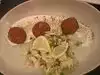 On an evening with a strong storm we decided not to leave the hotel choosing this small but cozy place. Italian menu very nice service and attentive to the customer's request. In 4 people we ordered appetizers (salami, meatballs and arancini) and pizza margherita (all in the picture). It was all very good, I found the arancini very special (excellent) and also the pizza margherita was of excellent quality. Pleasant evening accompanied by a good local beer (Brooklyn summer pale Ale) , absolutely honest price about $ 27 each for what reported thanks!