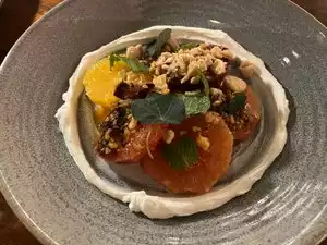 For whatever reason this place didnât quite rise to 5 stars for me. My sister has been staying nearby for business and has been here several times, so she recommended it for dinner tonight. Itâs a wonderful place with a nice atmosphere and great servers. High end service and high end dining but very comfortable. You can order dishes to share or to eat by yourself. We shared trout crudo, crab salad, fried freekeh, agnolotti, bread, and purple scallions. Two of us had steak and one had duck. The shared dishes were excellent- I especially enjoyed the crab salad and the scallions. The steak/duck not so much when compared to the others. We tried the makrut leaf lime sherbet, apple sorbet and persimmon ice cream for dessert. I think the apple was my favorite of the 3. I would definitely return and would recommend this place to others!