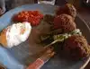 We stopped in here before a play this weekend. We do not frequent the Deep Ellum area much so this little place was a nice surprise. Armoury D.E. seems to be more of a bar than restaurant and the exposed brick walls and minimalist decor fits in with the atmosphere. We actually sat at the bar and had an attentive server. The beer, wine and drink list was quite impressive. We choose a couple of draft beers and they were both enjoyable. We ordered the Hungarian Meatballs for an appetizer and they were delicious. I loved the pepper sauce served alongside them! Next up was the Langos, This was a round, deep-fried flatbread with 2 kinds of cheese (traditional style) that was served with sour cream, a paprika cream sauce and minced garlic.It was light and airy and would have been a great meal by itself. We chose the Porkolt for our entree. This was a pot roast-type dish but was made with chopped up ribeye and a tasty red sauce. We chose the spatzle (small dumpling) instead of the potatoes as a side.We finished off the meal with a banana bread topped with vanilla ice cream - yum! Every dish was very tasty and had the perfect amount of spices and seasonings. It was a nice change of fare for us and was most enjoyable. Nothing fancy - just good Hungarian food.