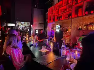 A gorgeous new gem in the heart of coral gables! From the friendly welcome to the superior jazz orchestra and attentive barmen, all was excellent. Lloyd runs a tight ship here, in a small sophisticated room, exotically decorated either vintage jazz instruments and elegant tea services (yes, it sounds strange but brewed hot tea is served). The decor is elaborate & and eclectic. The mood is sultry. Age range from 20s to 70+.