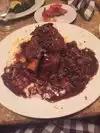 On the recommendation of our Innkeeper, we went for the Pork Osso Bucco. BTW, best blind menu selection ever, I wouldn't ever ordered and it was sublime. Very well cooked, tender, falling off the bone with awesome mushroom risotto. A memorable dish, highly recommend. Spouse had the lasagna and it was as good. Good wine selection and service even when they were very busy. It is an informal, familiar place and we enjoyed it very much.