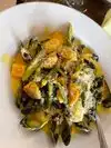 We had a phenomenal, knock your socks off kind of dinner. We selected Pollo Giardino, Capellini Al Bacio, Capellini Bosco E Mare. We had a reservations and were seated promptly despite it being crowded. We dined here on a Saturday evening and it was packed. The table next to us had the pork and veal osso bucco dishes and they looked amazing. Portions were great and we had leftovers. Wait staff was attentive and friendly. A win if you are in Little Italy.