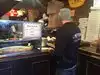 The pizza slicer thinks he's a rock star. SAD. Not good for any delivery people or company. The Bouncer will make you wait in line with everyone else. Food is okay.