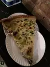 The artichoke pizza is phenomenal. Crispy light crust, white pizza with great complexity of flavors. Initially had thr 3 cheese slice but this was no comparison to the artichoke. Just do it. Yum!