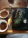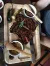 In our party of 6, we ordered a few different steaks, some steak tacos (mind you, it was ribeye and wagyu), several small plates and we ate family style. Terrific way to try as much as possible. Wonderful way to eat steak so many different ways. The dining area was bustling, smoky with a modern rustic decor - felt good being there. We recommend a visit, we definitely would come back in our next trip to Seattle. Tip: go early and be prepared to wait in line.
