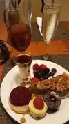 Thanksgiving seemed to approach with the usual holiday swiftness that comes and goes with the speed of a freight train. We had found ourselves without a restaurant choice just two weeks before and most all of the popular restaurants were no longer taking reservations. We had thought to go to Asado several times so I called and was relieved to find an opening here. The dining room has been redone since it former days as a mainly BBQ serving establishment. The interior is modern and inviting and with the spread we encountered as we moved to our table once inside, even more so. Many of the usual suspects for the brunch buffet with breakfast items of sausage, an omelet station, bacon, eggs benedict (more sauce please) etc., then turkey, prime rib, maple glazed ham for the main attractions. The turkey was juicy and tender, the prime rib (incorrectly sliced in advance) a little cold and rubbery,and the ham, nothing special. The poached shrimp with lemon creme fraiche would have been wonderful, but the shrimp were less than flavorful yet told that they were Texas gulf coast when asked. H-m-m-m? Many other items including salads, fresh fruits and sides to choose from. Not until this point did we find out that the champagne was complimentary. A small oversight by our otherwise attentive waitress. In fact, I think we had 4 different waiters all making sure we had what we needed. They must have been given one hell of a "customer's always right" speech that morning as all the staff was exceedingly polite and attentive. Now for the desserts. The chef spent 5 days preparing all the desserts that filled the multi-level tiers on rows of tables. The quantity and variety were mind blowing. Trying to decide which ones (yes ones plural. selection of just one is impossible) to try was sheer torture. If you have a sweet tooth, this hallway of dessert delights would be tantamount to a a five year old finding a room full of presents on Christmas morning all with his/her name on it. Key lime pie, chocolate and cherry ganache, pumpkin cheese cake, and so many others . . . this has to be the best dessert offering I think I have ever had the privilege of experiencing. It really was that impressive. I almost hate to wax on about this restaurant and its Thanksgiving brunch as I would like to keep the buffet as uncrowded as it was and revel in the secret of such a find a while longer.