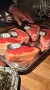 For the price, this place was underwhelming and sloppy. Waiter seemed to want to get more money but why? It’s already super expensive. Based on the caliber they’re going for it didn’t sit right. It took about an hour from being seated to get any food. The waiter wanted us to see the raw cuts of meat and fish before we saw the menu, which took too long. We were starving. He recommended five appetizers, but appetizers are fairly large so by the time the fish came out, I was barely hungry, and by the time the steak came out, I was no longer interested. I was completely full after the appetizer portion. The truffle ravioli was absolutely delicious and I could have gone home after eating that.