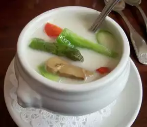 I enjoyed a light Thai soup with coconut milk and vegetables. It was very delicious and perfect for a vegan or if you just want to eat something light. I also had a watercress "salad." Unfortunately, they just serve you the watercress with all the stems. As you know the stems are bitter, so I had to remove them. The dressing was very light and delicious. The restaurant is very clean.