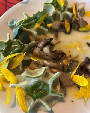 Wow, we have enjoyed this restaurant for years. And yet they stepped it up even another notch. Chef Evan served up a flower-shaped ravioli filled with carrot mousse and topped with nasturtium and sunflower petals. Summer yum. Two nearby tables also devoured this special entree. Other favorites for us are the Rigatoni, Lasagna Rotolo, thin crust pizzas, and seasonal salads. The service is always friendly, and the setting sparkles with an easy ambiance.