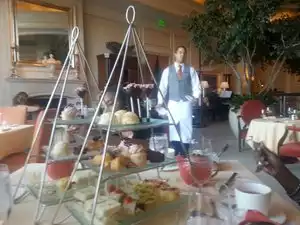 Went to high tea on Saturday afternoon. There were five of us. I have read a negative review on Tip Advisor, but I have to say we enjoyed it very much. All five of us have had high tea in Europe, and this one was as good or better. Each of us got to select our own tea and individual tea pots were served. Selection was excellent. I had the St Regis special tea (when in Rome.....) and it was fragrant and delicious. Food was served on a three-tiered desert stand. The first layer contained items akin to appetizers. The second tier contained a savory selection, and the top tier had desert items. The service was impeccable and the restaurant was beautiful. There were some families there and everyone seemed to be having fun, including the men and the children (there is a special three-tiered stand for kids).