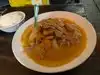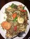 Everything tastes made from scratch - even the four sauces aight arrive at the table early. The one with tiny bird papers is spicy and delicious added to just about anything you order. Two of us split the fried red snapper - very generous in size (seemed larger than the one pound it was supposed to be) and cooked perfectly over a bed of vegetables that were mild and still a bit crispy. Yellow curry with chicken was good but a bit on the thin side. Brown rice was barely warm when served and the extra sticky rice we ordered was sub par. Metal chairs were not comfortable but we would go back for the friendly service and great fish.