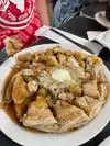 Wow! What a disappointment. It is a very popular spot with loud DJ, and lineups. A spot for people trying to be hipsters…I guess we are part of that group. Food was terrible. Heavy huge portions devoid of any flavour or originality. Fittingly that it is across from top tourist spots as I would think locals would scoff at this joint. Try krog street market area for good, original food,