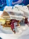 This place had pretty solid reviews, and there was no wait. Very loud in there for breakfast time. Service was prompt however for 2 hot drinks, 2 sandwiches and 1 side it was $42. The sandwiches are advertised at $4 but that only includes bread and eggs, meat and cheese are extra. Biscuit was very salty as were the eggs. Maybe the sweet stuff is more well balanced?
