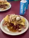 ate breakfast twice my wife and i had the chicken and waffles, my wife got hers with the peach cobbler, we both enjoyed our meals, the chicken was perfectly cooked, some of the best i have ever ate