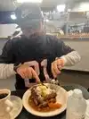 We went there yesterday after having a mooch around the Olympic Park, it’s about an 8 minute walk. The lady at reception could have a bit more smiley, she did warm up in the end, but she took our number and we had about a 20 minute wait. It was a nice spring day, the sun was out and they have a fantastic DJ outside spinning some incredible tunes, which makes the time go really quickly. Once we sat down, our sever was really cool, smiley and friendly. He took us through the specials/secret menu and we opted for the chicken and waffles with peach cobbler gravy. It was truly magnificent. It was an incredibly generous portion and we did well to finish it. In hindsight, we should have probably left some and taken the remainder in a ‘to go’ box. We hardly needed to eat for the rest of the day, after having eaten at about 1.00pm. The one note of caution is the price. In hindsight we should have asked the price of the special. It ended up being nearly $70 for the two of us. Once you added cost of the drinks, including $4 for small carton of water which took us a back a bit, as we were expecting them to provide just regular tap water like most places do, with tip the bill came to about $100 for the two of us. Given that, I’d suggest that TripAdvisor change the cost rating from one $ sign to at least $$. But let me reiterate, whilst we were a bit surprised by the final bill, we came away with big smiles on our faces and our bellies extremely full. We had an amazing experience. We will be back, and we’ll pay more attention to the prices and what we order.