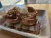 Day two of our Atlanta trip a decided to get a small bite for breakfast. Did not know small bite is not part of Atalanta breakfast club’s vocabulary. We Split a cinnamon roll between two of us. It was good and glad we did split it. But Let me tell you the chicken and waffle are not only amazing but filling. The seasoning of the chicken was very savory. The waffles are golden and very fluffy. You ask them they have the best chicken and waffles I must admit it does rank high. The staff are friendly and explain the up charges. Water is boxed and has fee. So we were surprised when we saw the bill. As mentioned in others comments. It does get a bit loud. If your looking good not so quite breakfast spot check them out.