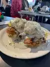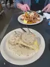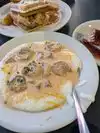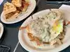 Wow Lots of delicious food. Truly a southern breakfast. There where 4 of us. I got there late and the other 3 had already ordered. Biscuits and gravy, chicken and waffles, shrimp and grits. I was so lucky because I got some of everyone’s. And they where all very Tasty.