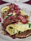 Beyond disappointed. Ordered the egg tacos and they were covered in cinnamon. Not described in the menu Or by our server. I told her server it was not as described and asked for some toast toast to put the eggs on as the cinnamon was not to my liking. He then proceeds to charge $1.75 for the one piece of toast