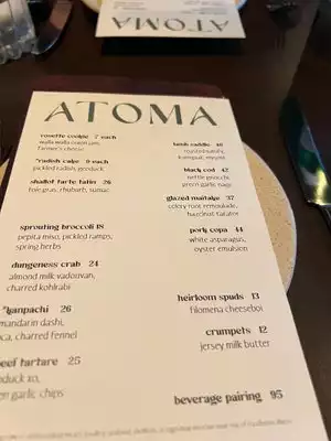 Atoma has a limited menu but the food is both unusual and excellent. Do not miss the small snacks: the rosette cookie and the chick pea pansies were terrific. We had really good sockeye salmon and a grilled cucumber appetizer.