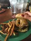 We parked to watch the Bats at the Congress Bridge southeast public parking and since we were early we walked dow here to get some dinner. We both just got some Cheeseburgers & Fries. They were good & filling. Friendly & prompt service too!