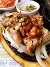 The BBQ chicken is HOT. I have to admit I should have listened to the server, and not ordered it . You only get what they serve, no Changes. the meal was quick, it was a lot of food, in my world the tofu soup was suficent to keep my stomach happy