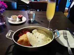 Food and service were great. The waiters were attentive, never did we feel like we were forgotten. Love when service is on point. Food was also great, fresh and didn't last long to receive it, always a plus. I guess my only concern about the venue was, because its a tiny venue, seating can become tricky. We were seated with another couple on a table of four. I mean, it didn't bother me because we were seated right away and it didn't bother us to be seated with another couple. Just know, your conversation won't be private. Close to comfort. Overall, great brunch spot.