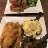 Delicious dinner. Started with the fried chicken sliders which were fresh hot and delicious. I had the Blvd combo which had catfish, greens and potato salad. While the whole meal was wonderful I could have eaten a large bowl of greens and been very happy! My sister had the equally flavorful turkey meatloaf with garlic mash and broccoli. The staff was super friendly and attentive.