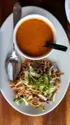 So we thought we were going to burma superstar, but this is a different place right down the street. Really good lunch, Burmese soup to start, and I had kau soi noodles, which I highly recommend. Full of complex flavors. Partner had lamb curry, which was good but not outstanding. When we walked down the street, there were about 20 people waiting outside of burma superstar. We walked right into B Star with no waiting. Desserts looked interesting, next time we'll try one.