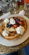 We were on our way to another restaurant for breakfast, but discovered the wait was rather long and there was no seating available. We walked not even a block away and sat down in Bacco Cafe. It was a wonderful, though pricey, meal! Each member of our group was really satisfied with their choice. The coffee mugs are HUGE ! This is a must!