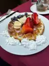 We had brunch here. There are two floors to the restaurant. We were on the lower floor. Both floors have a limited number of tables so we were grateful to get seated quickly. The staff were very efficient and friendly. The waiter recommended a juice from the juice bar and it was delicious. My daughter ordered the waffle with berries. I ordered the breakfast plate that had eggs, potatoes, and bacon. We shared the two meals between us so that we both had variety. The portions were large and the food was extremely tasty. We would recommend this place to anyone.