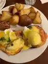 Seriously disappointing experience, especially after reading many great reviews. I ordered one of the dishes they're known for, the Crab Benedict. It sounded wonderful, as did most of their dish descriptions. I have to admit, the piach eggs were excellent but the remainder of the dish left me wanting. The entire meal was a disappointment. The biscuit had to be day old and so dry, you couldn't break it in half. Neither butter nor jam could salvage it. Have you ever tried to reheat a baked potato and ended up with that weird, icky reheated potato taste? That's what the breakfast potatos taste like. The dining area was cold, as wS the food. Service was unremarkable, but the food was extraordinarily bad.