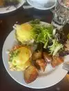 The restaurant was very crowded but we were able to get an outdoor table on the street side. I had the Salmon Benedict which was so delicious! Their coffee was also excellent. The wait staff was attentive and friendly. Overall a great experience.