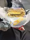 My husband got sausage, egg and cheese on a plain bagel and it was huge! Hot, cheese, lots of egg. It would have cost just as much if not more for a smaller sandwich at McDonald’s. I got a plain bagel with strawberry cream cheese and it had chunks of strawberries in the cream cheese which was nice touch. Their menu is huge. There are about 6 bar stools to eat at but if there is a line it’s hard to sit at them. Ps. If you need a spot for lunch the gyro truck on the corner is delicious and cheap. Huge gyro for $5