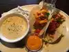 We stopped here for a quick lunch while visiting friends. We had the lobster and shrimp quesadilla with chowder and the half Cuban sandwich with black bean soup. Also ordered the onion rings, which were HUGE! All of our food was very good, the restaurant was nice and clean, and our waitress was very friendly and helpful. We'll definitely come back