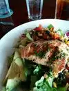 The food was great and the service was excellent. I love the island theme decor. The chicken dinner salad was huge! I loved the tangy dressing that was used. It was so light. The salmon dinner salad was just as huge and just as tasty. The other person in our party enjoyed the fish tacos.